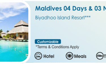 Maldives 04 Days & 03 Nights (Biyadhoo Island Resort 3N) Tour Highlights : Transfer From Velana Airport to Hotel. Luxurious Island Resort in Maldives. Return...